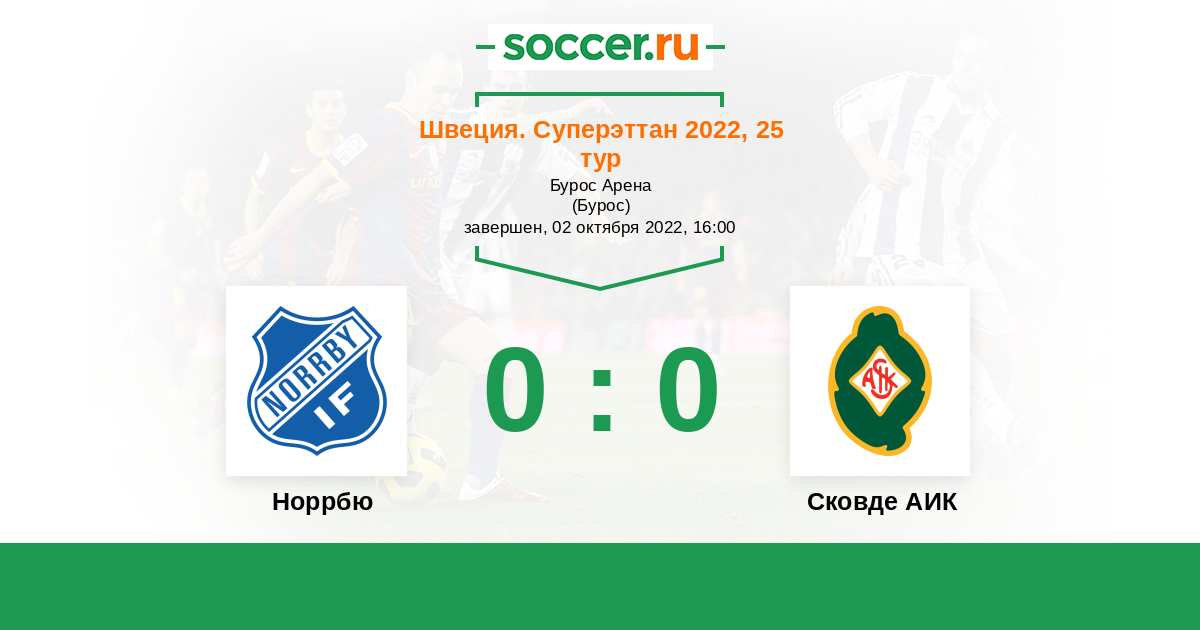 Швеция. 1-й дивизион: Север 16.10.2011 Норрбю Логотип футбольный клуб Норрбю (Бурос) 0:1 Логотип футбольный клуб Сковде АИК Сковде АИК