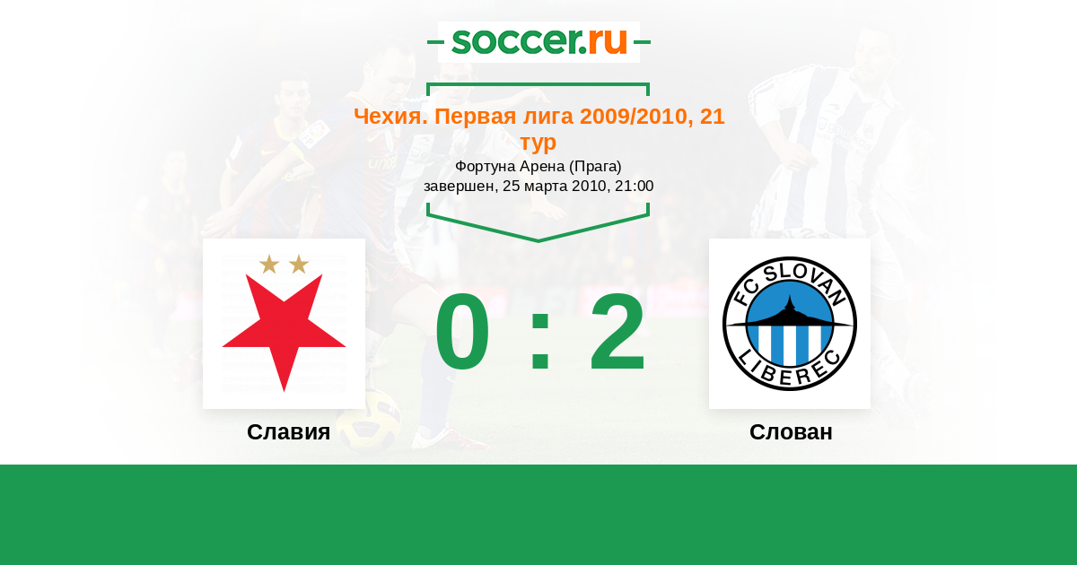 Чехия. Первая Лига 12.09.2009 Слован Логотип футбольный клуб Слован (Либерец) 1:1 Логотип футбольный клуб Славия (Прага) Славия