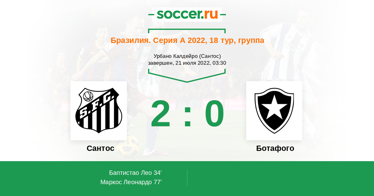 Бразилия. Серия А 23.07.2023 Сантос Логотип футбольный клуб Сантос (Сан-Паулу) 2:2 Логотип футбольный клуб Ботафого (Рио-де-Жанейро) Ботафого