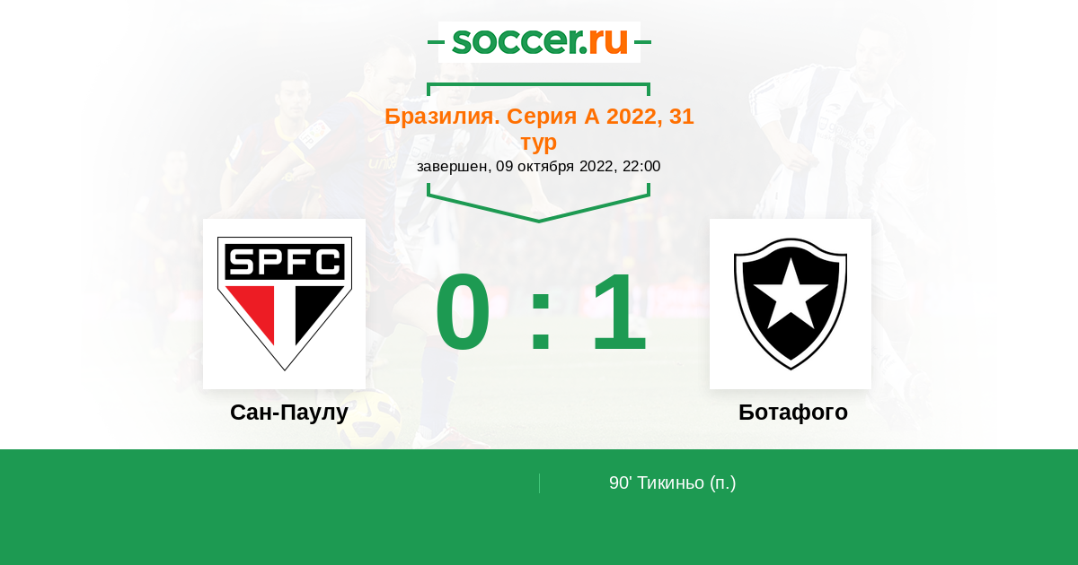 Бразилия. Серия А 16.06.2022 Ботафого Логотип футбольный клуб Ботафого (Рио-де-Жанейро) 1:0 Логотип футбольный клуб Сан-Паулу Сан-Паулу
