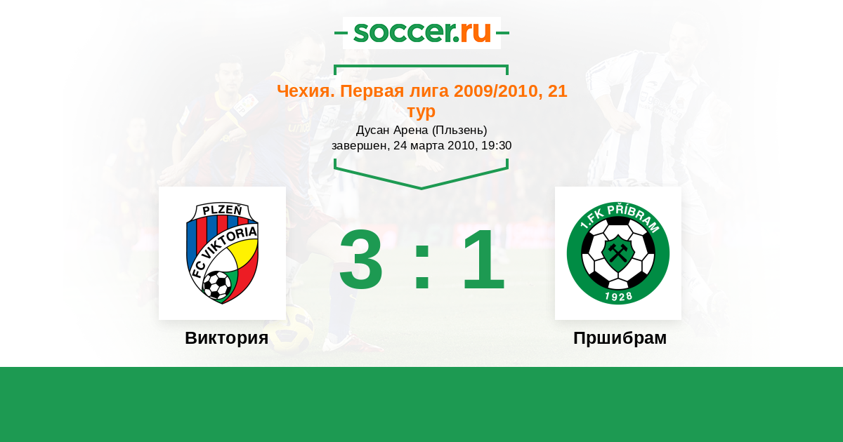 Чехия. Кубок 08.04.2010 Пршибрам Логотип футбольный клуб Пршибрам 1:1 Логотип футбольный клуб Виктория (Пльзень) Виктория