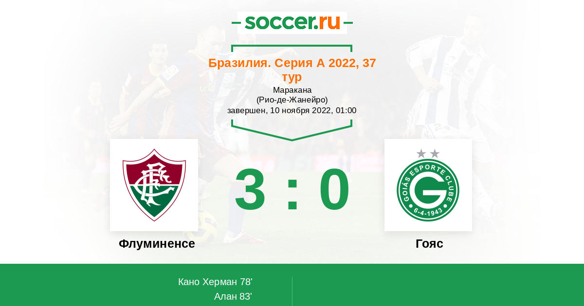 Бразилия. Серия А 26.10.2023 Флуминенсе Логотип футбольный клуб Флуминенсе (Рио-де-Жанейро) 5:3 Логотип футбольный клуб Гояс (Гояния) Гояс