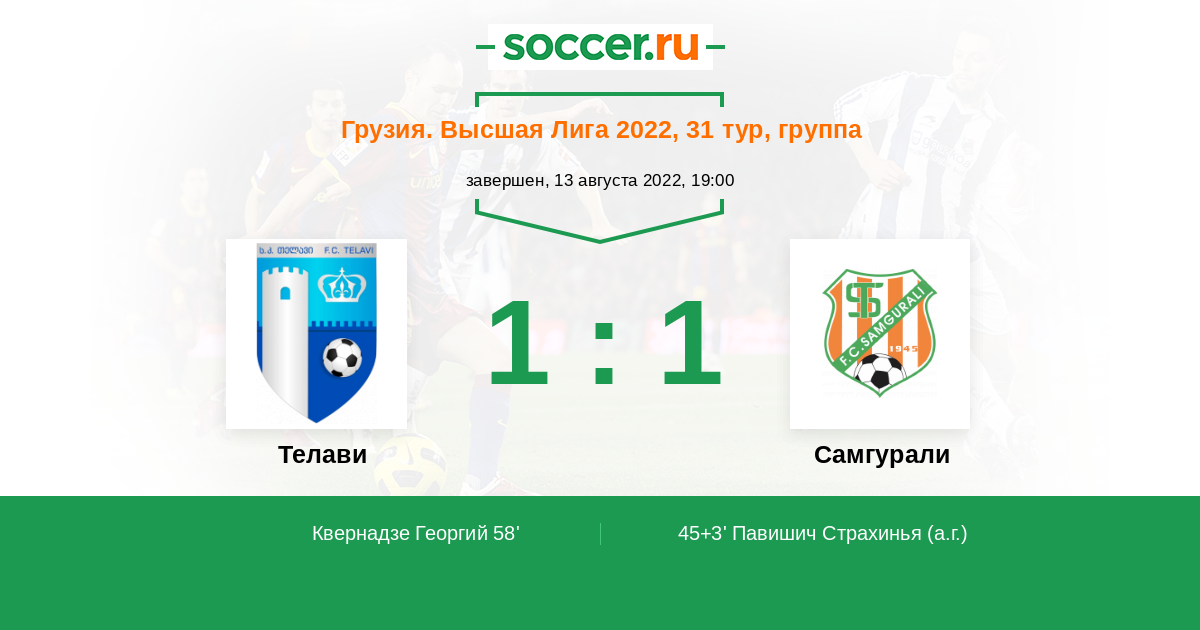 Грузия. Высшая лига 15.10.2022 Самгурали Логотип футбольный клуб Самгурали (Цхалтубо) 2:0 Логотип футбольный клуб Телави Телави