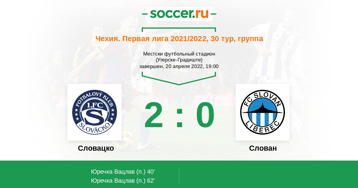 Чехия. Первая Лига 25.07.2021 Слован Логотип футбольный клуб Слован (Либерец) 0:1 Логотип футбольный клуб Словацко (Угерске-Градиште) Словацко
