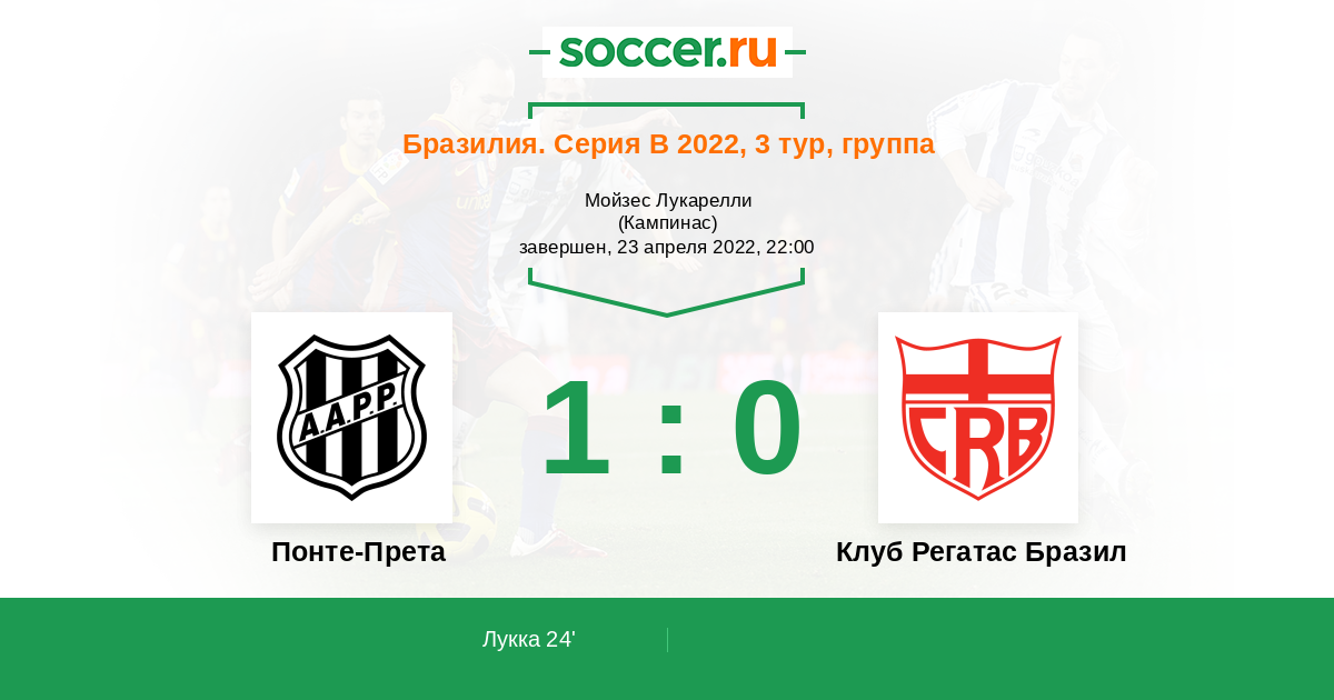 Бразилия. Серия В 02.06.2024 Понте-Прета Логотип футбольный клуб Понте-Прета (Кампинас) 4:2 Логотип футбольный клуб Клуб Регатас Бразил (Масейо) Клуб Регатас Бразил