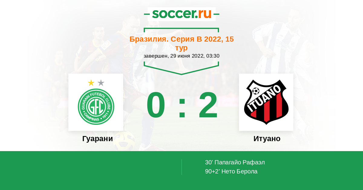 Бразилия. Серия В 29.04.2023 Гуарани Логотип футбольный клуб Гуарани (Кампинас) 1:0 Логотип футбольный клуб Итуано Итуано