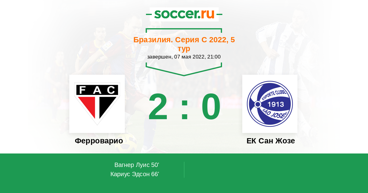 Бразилия. Серия D 16.07.2018 Ферроварио Логотип футбольный клуб Ферроварио (Фортальеза) 3:1 Логотип футбольный клуб ЕК Сан Жозе (Порту-Алегри) ЕК Сан Жозе