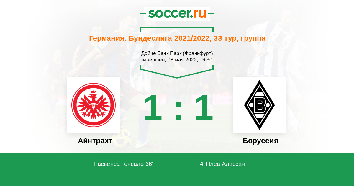 Германия. Бундеслига 15.04.2023 Айнтрахт Логотип футбольный клуб Айнтрахт (Франкфурт) 1:1 Логотип футбольный клуб Боруссия (Менхенгладбах) Боруссия