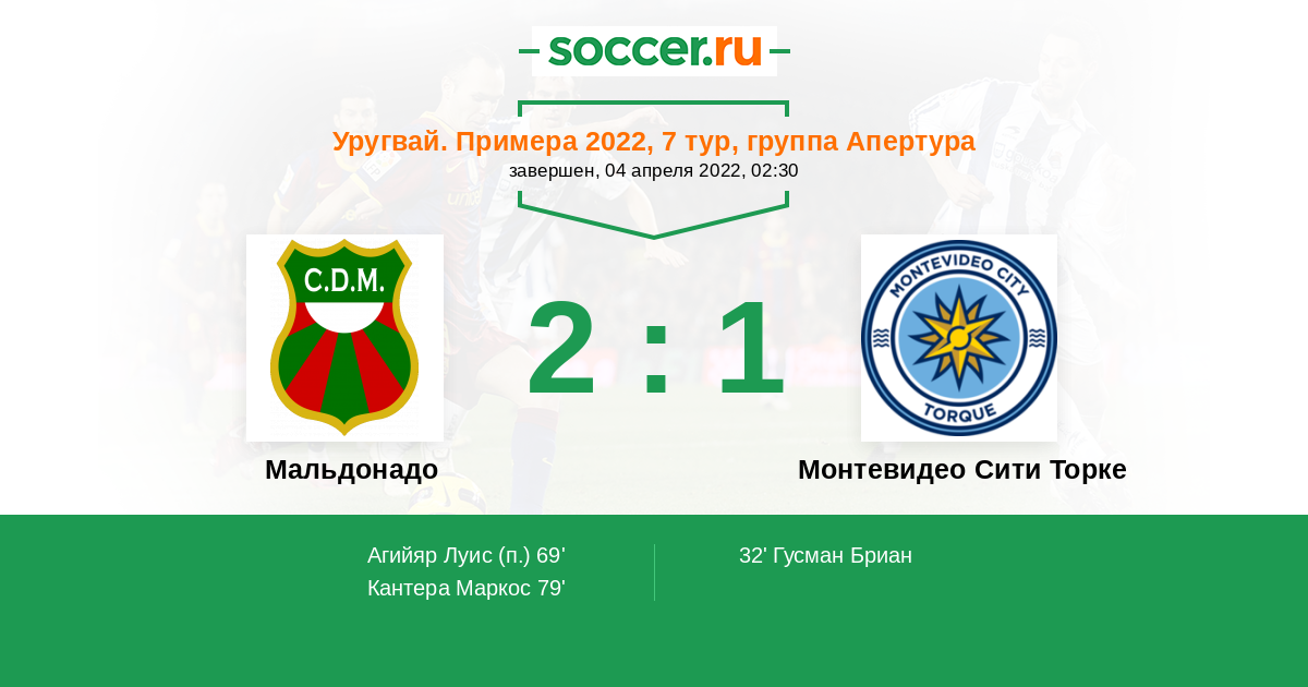 Уругвай. Примера A 01.05.2023 Мальдонадо Логотип футбольный клуб Мальдонадо 3:2 Логотип футбольный клуб Монтевидео Сити Торке Монтевидео Сити Торке