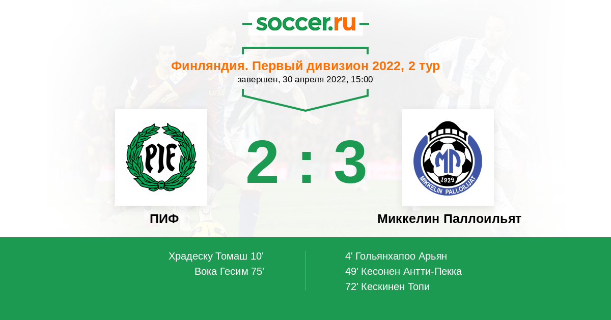 Матчи Финляндия. Первый дивизион 2022