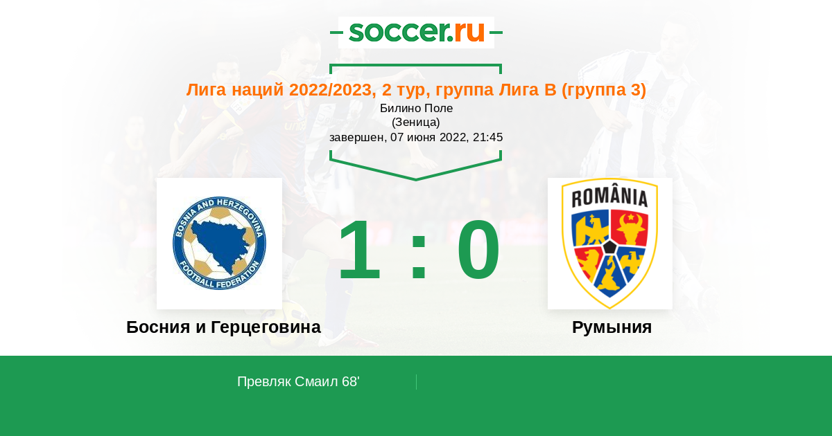 Босния и Герцеговина смогла вырвать выездную ничью в первом туре, и это должно их вдохновить. А Румыния наоборот откровенно разочаровала в прошлом матче, поэтому ждем первой победы боснийцев в Лиге Наций.