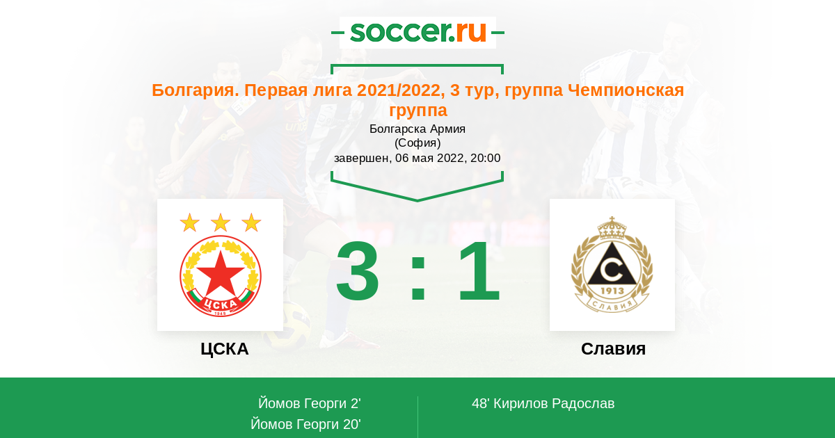 Болгария. Первая лига 24.04.2010 Славия Логотип футбольный клуб Славия (София) 1:3 Логотип футбольный клуб ЦСКА (София) ЦСКА