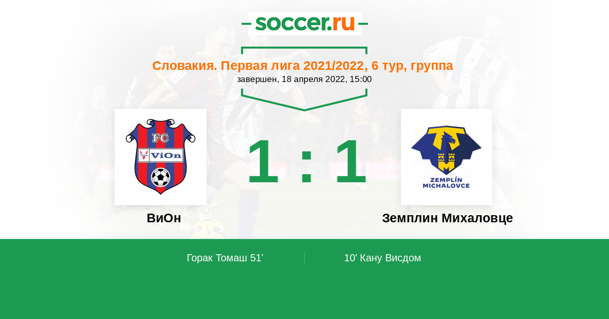 Словакия. Суперлига 21.04.2018 ВиОн Логотип футбольный клуб ВиОн (Злате-Моравце) 2:2 Логотип футбольный клуб Земплин Михаловце Земплин Михаловце