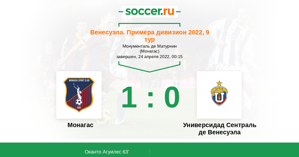 Венесуэла. Примера дивизион 17.09.2021 Монагас Логотип футбольный клуб Монагас (Матурин) 2:1 Логотип футбольный клуб УСВ (Каракас) УСВ