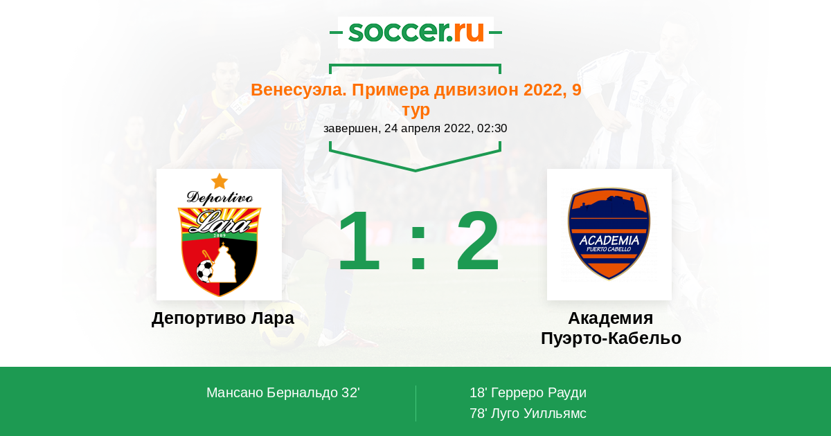 Венесуэла. Примера дивизион 31.07.2022 Пуэрто-Кабельо Логотип футбольный клуб Пуэрто-Кабельо 3:2 Логотип Депортиво Лара (Баркисимето) Депортиво Лара