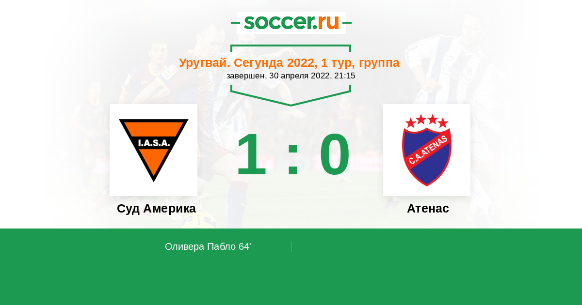 Уругвай. Сегунда 24.07.2022 Атенас Логотип футбольный клуб Атенас (Сан Карлос) 1:2 Логотип футбольный клуб Суд Америка (Монтевидео) Суд Америка