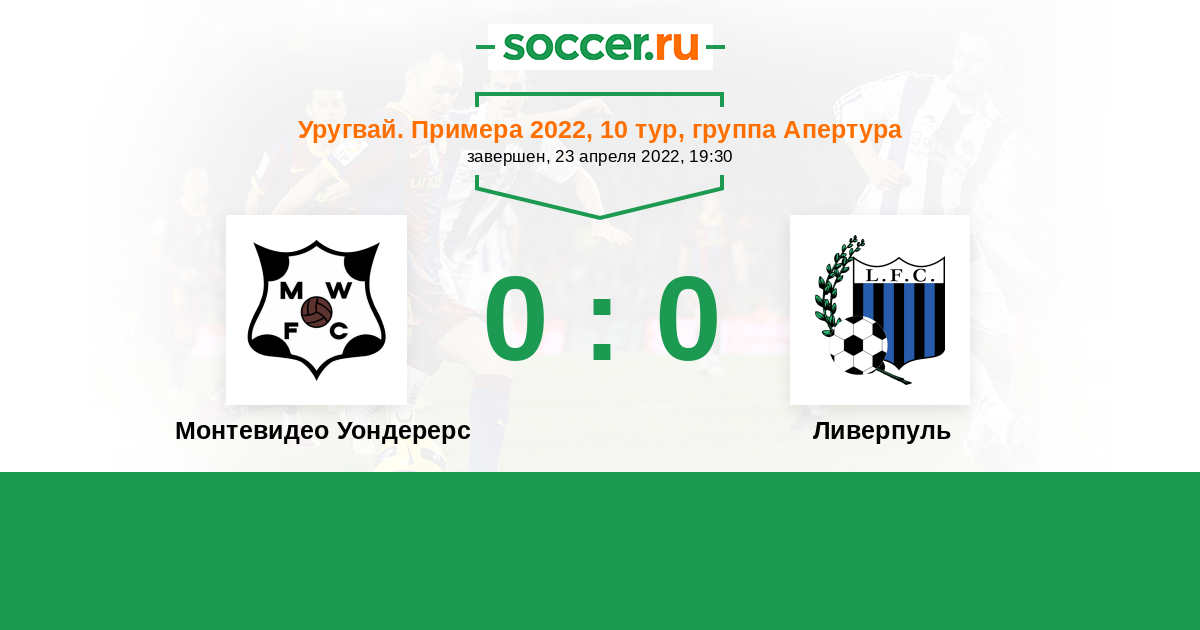 Уругвай. Примера A 24.09.2022 Ливерпуль Логотип футбольный клуб Ливерпуль (Монтевидео) 1:1 Логотип футбольный клуб Монтевидео Уондерерс Монтевидео Уондерерс