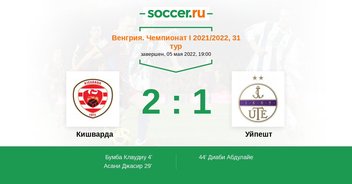 Венгрия. Чемпионат 1 14.05.2023 Кишварда Логотип футбольный клуб Кишварда 2:0 Логотип футбольный клуб Уйпешт (Будапешт) Уйпешт