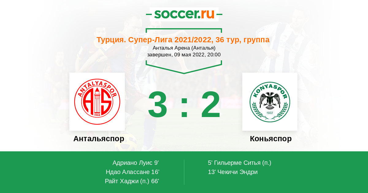 Турция. Суперлига 15.05.2021 Антальяспор Логотип футбольный клуб Антальяспор 0:0 Логотип футбольный клуб Коньяспор Коньяспор