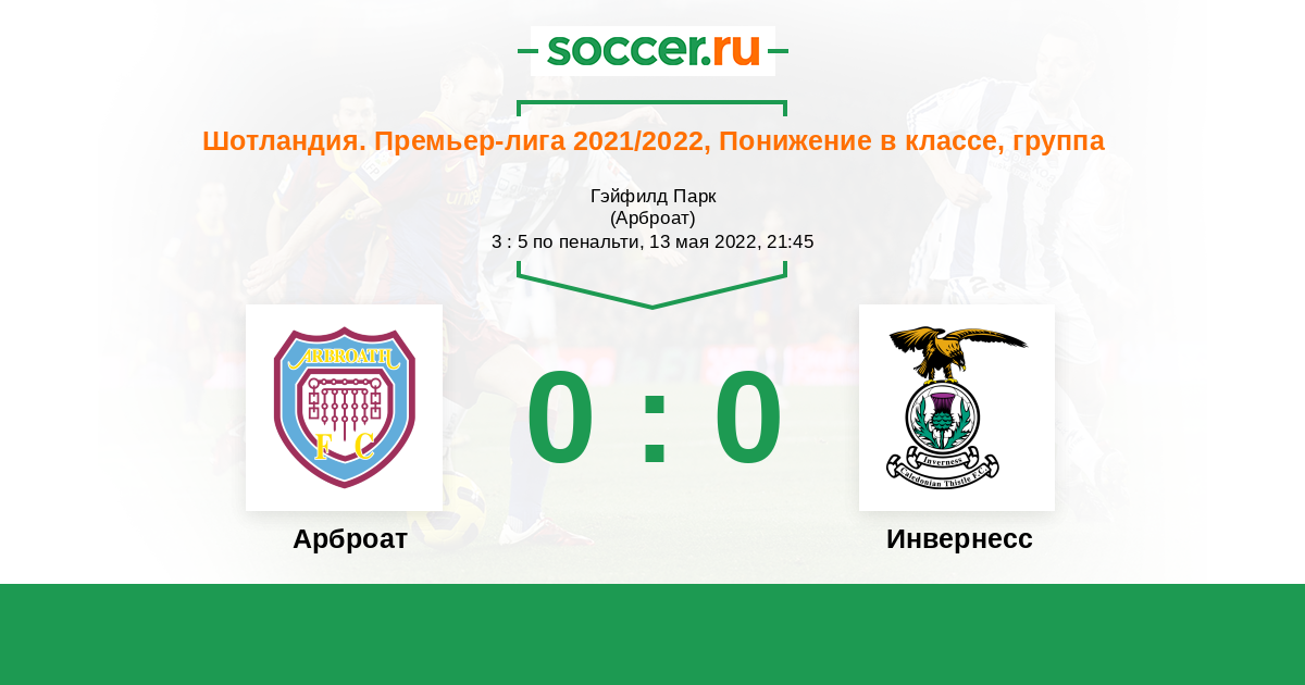 Шотландия. Премьер-Лига 10.05.2022 Инвернесс Логотип футбольный клуб Инвернесс 0:0 Логотип футбольный клуб Арброат Арброат