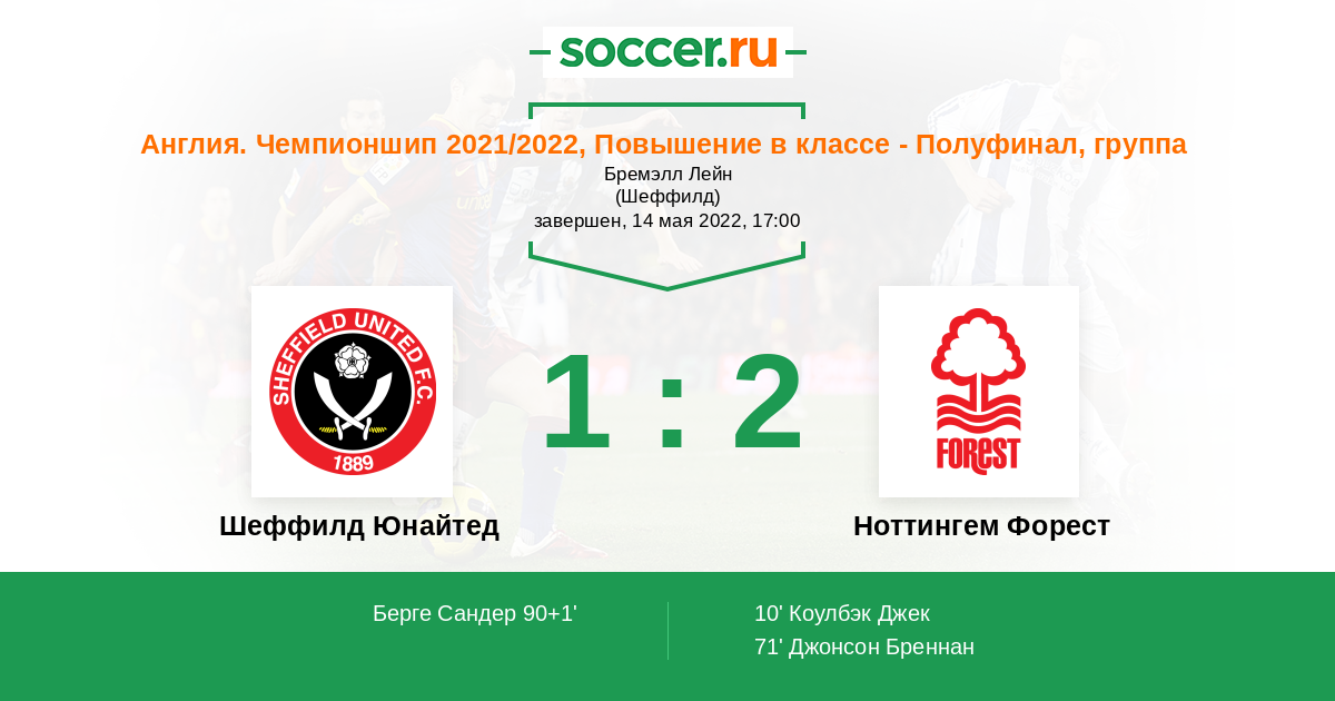 Англия. Чемпионшип 17.05.2022 Ноттингем Форест Логотип футбольный клуб Ноттингем Форест 1:2 (3:2) Логотип футбольный клуб Шеффилд Юнайтед Шеффилд Юнайтед