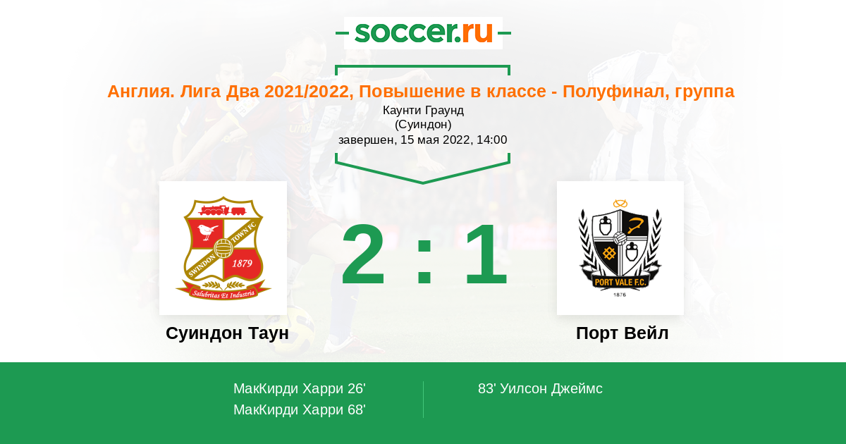 Англия. Вторая Футбольная Лига 15.01.2022 Порт Вейл Логотип футбольный клуб Порт Вейл (Сток-он-Трент) 1:3 Логотип футбольный клуб Суиндон Таун Суиндон Таун
