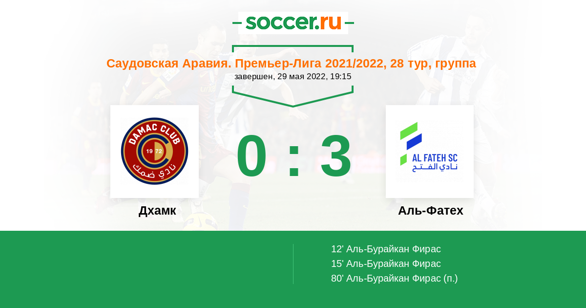 Саудовская Аравия. Премьер-Лига 27.05.2023 Аль-Фатех Логотип футбольный клуб Аль-Фатех (Эль-Хаса) 1:1 Логотип футбольный клуб Дамак (Хамис-Мушайт) Дамак