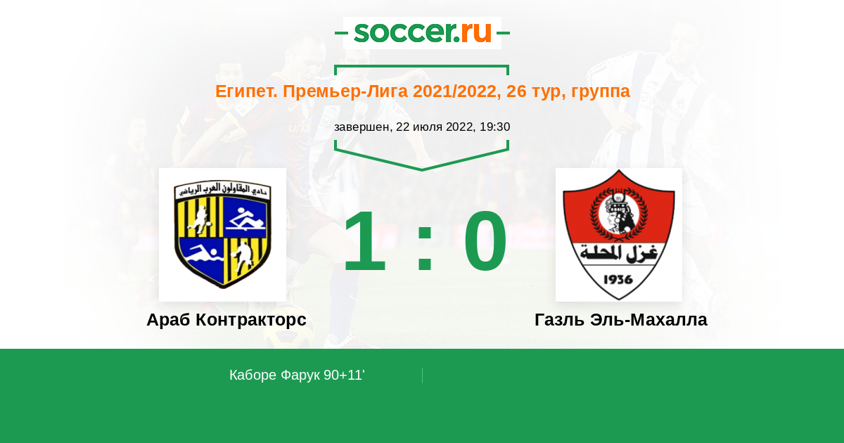 Египет. Премьер-Лига 25.08.2021 Газль Эль-Махалла Логотип футбольный клуб Газль Эль-Махалла 1:2 Логотип футбольный клуб Араб Контракторс (Каир) Араб Контракторс
