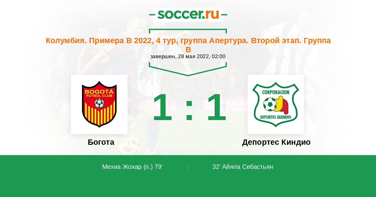 Колумбия. Примера B 10.03.2024 Богота Логотип футбольный клуб Богота 2:2 Логотип футбольный клуб Депортес Киндио (Армения) Депортес Киндио