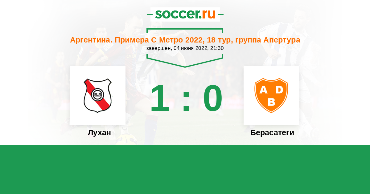 Аргентина. Примера С Метро 18.06.2017 Лухан Логотип футбольный клуб Лухан 0:1 Логотип футбольный клуб Берасатеги (Буэнос-Айрес) Берасатеги