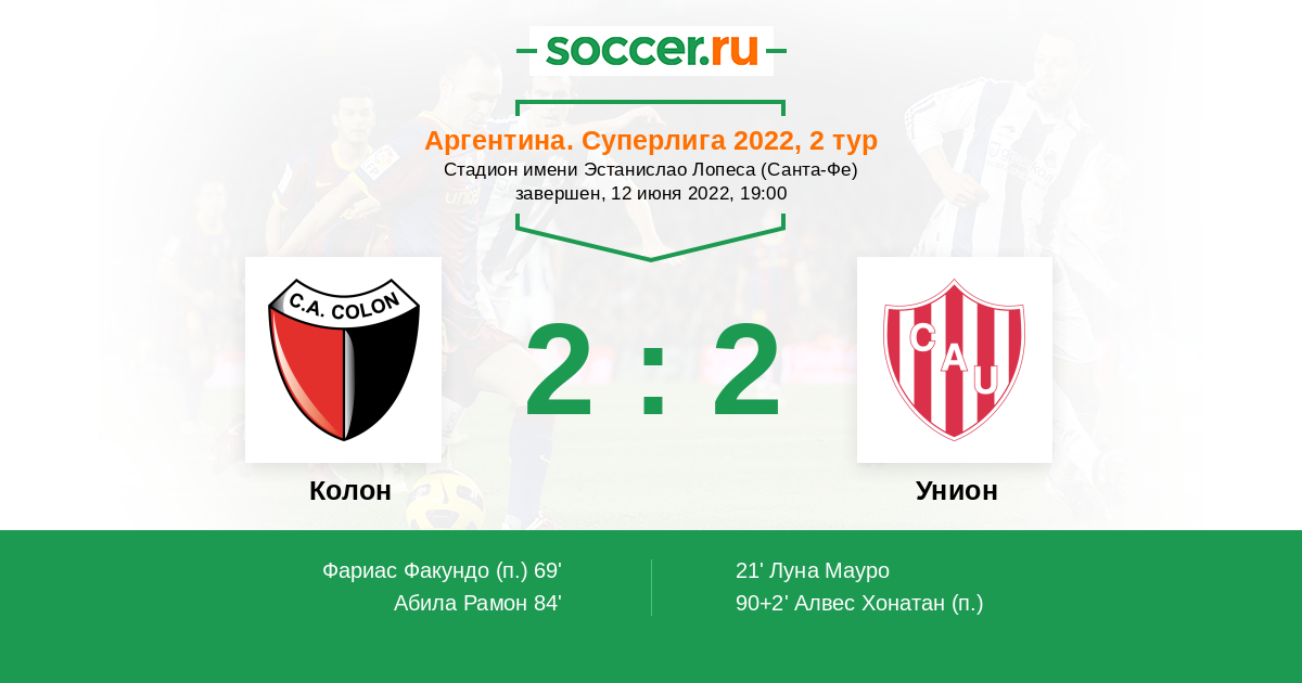 Аргентина. Суперлига 20.03.2022 Колон Логотип футбольный клуб Колон (Санте-Фе) 0:0 Логотип футбольный клуб Унион (Санта-Фе) Унион