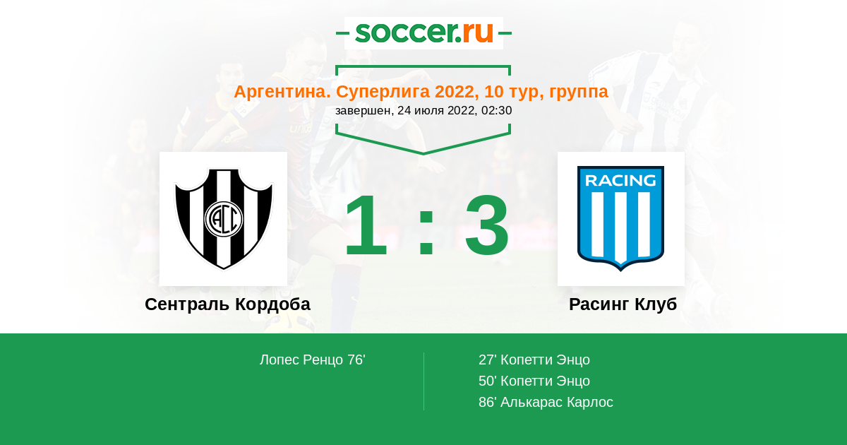Расинг Клуб 11:9 5:2 6:7