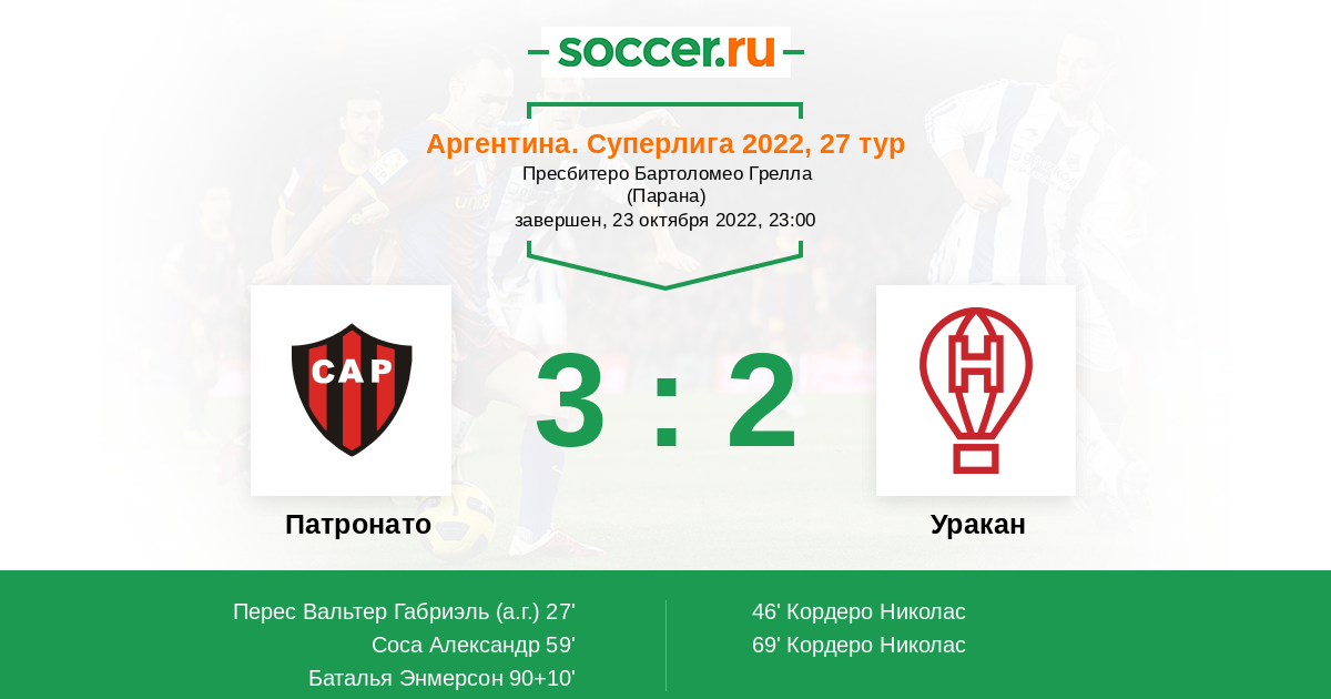 Аргентина. Суперлига 23.11.2021 Уракан Логотип футбольный клуб Уракан (Буэнос-Айрес) 1:0 Логотип футбольный клуб Патронато (Парана) Патронато
