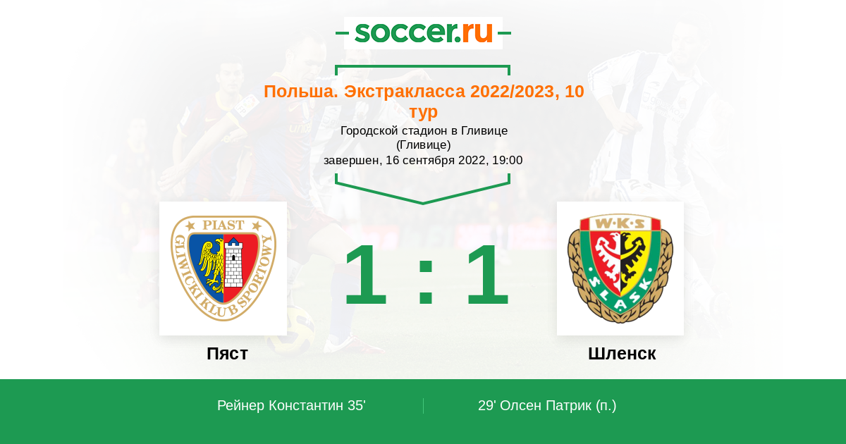 Польша. Экстракласса 23.09.2023 Шленск Логотип футбольный клуб Шленск (Вроцлав) 1:0 Логотип футбольный клуб Пяст (Гливице) Пяст