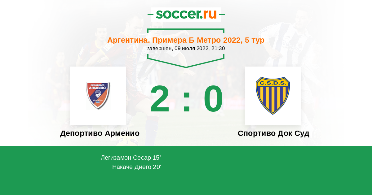 Аргентина. Примера Б Метро 10.02.2023 Спортиво Док Суд Логотип футбольный клуб Спортиво Док Суд (Буэнос-Айрес) 4:1 Логотип футбольный клуб Депортиво Арменио Депортиво Арменио
