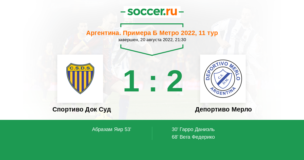 Аргентина. Примера Б Метро 04.06.2023 Депортиво Мерло Логотип футбольный клуб Депортиво Мерло 1:5 Логотип футбольный клуб Спортиво Док Суд (Буэнос-Айрес) Спортиво Док Суд