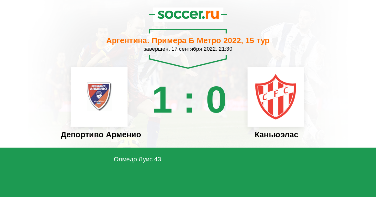 Аргентина. Примера Б Метро 24.07.2021 Депортиво Арменио Логотип футбольный клуб Депортиво Арменио 2:1 Логотип футбольный клуб Каньюэлас Каньюэлас