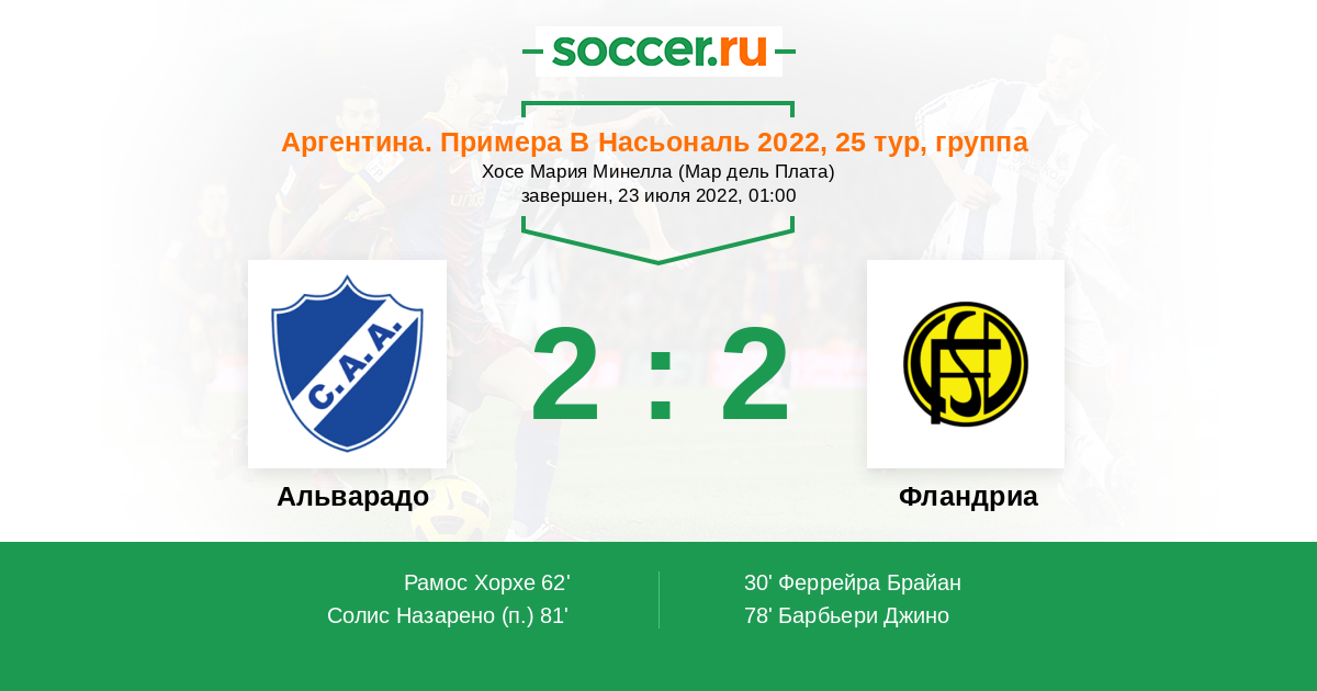 Альварадо 2:0 2:0 0:0