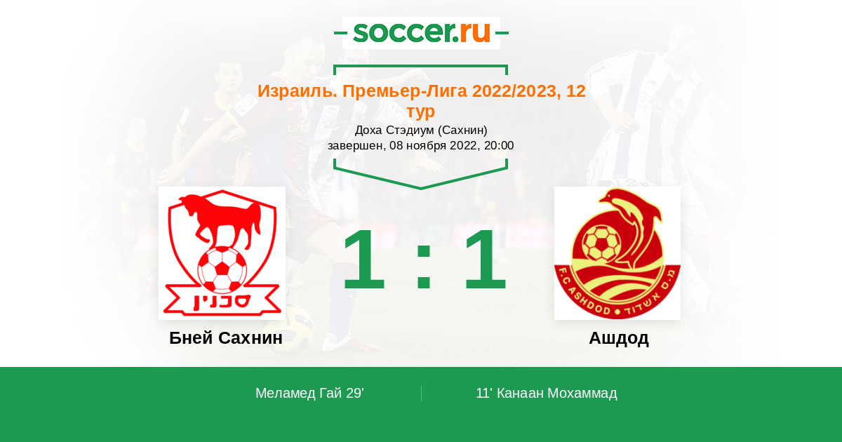Израиль. Премьер-Лига 02.03.2024 Бней Сахнин Логотип Бней Сахнин 1:1 Логотип футбольный клуб Ашдод Ашдод