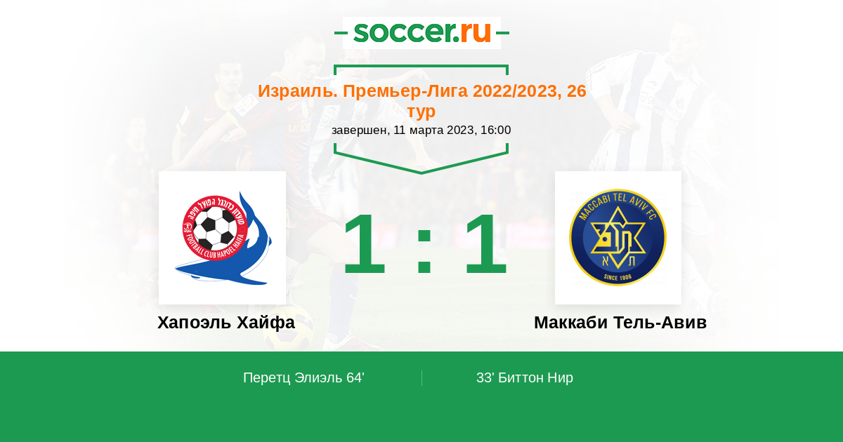Израиль. Премьер-Лига 11.03.2012 Маккаби Тель-Авив Логотип футбольный клуб Маккаби Тель-Авив 2:0 Логотип футбольный клуб Хапоэль Хайфа Хапоэль Хайфа