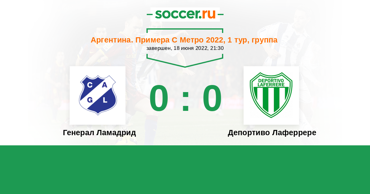 Аргентина. Примера С Метро 13.02.2022 Депортиво Лаферрере Логотип футбольный клуб Депортиво Лаферрере 0:0 Логотип Генерал Ламадрид (Буэнос-Айрес) Генерал Ламадрид