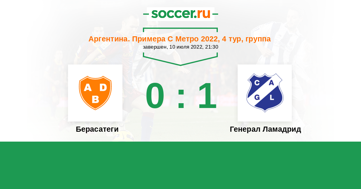 Аргентина. Примера С Метро 25.07.2021 Генерал Ламадрид Логотип Генерал Ламадрид (Буэнос-Айрес) 2:1 Логотип футбольный клуб Берасатеги (Буэнос-Айрес) Берасатеги
