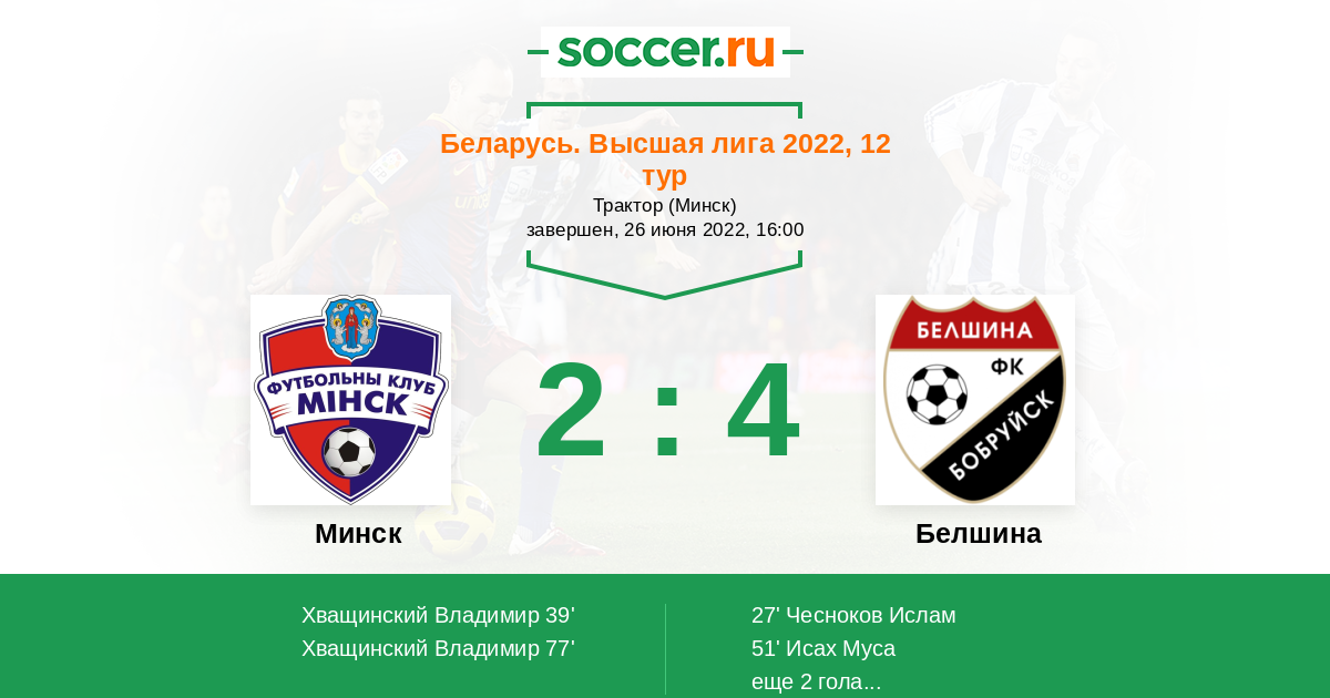 Беларусь. Высшая лига 06.06.2014 Белшина Логотип футбольный клуб Белшина (Бобруйск) 0:3 Логотип футбольный клуб Минск Минск