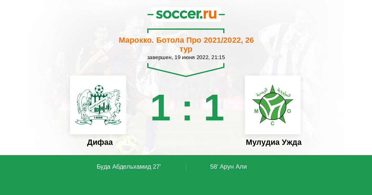 Марокко. Ботола Про 29.06.2021 Дифаа Логотип футбольный клуб Дифаа (Эль-Жадида) 2:2 Логотип футбольный клуб Мулудиа Ужда Мулудиа Ужда