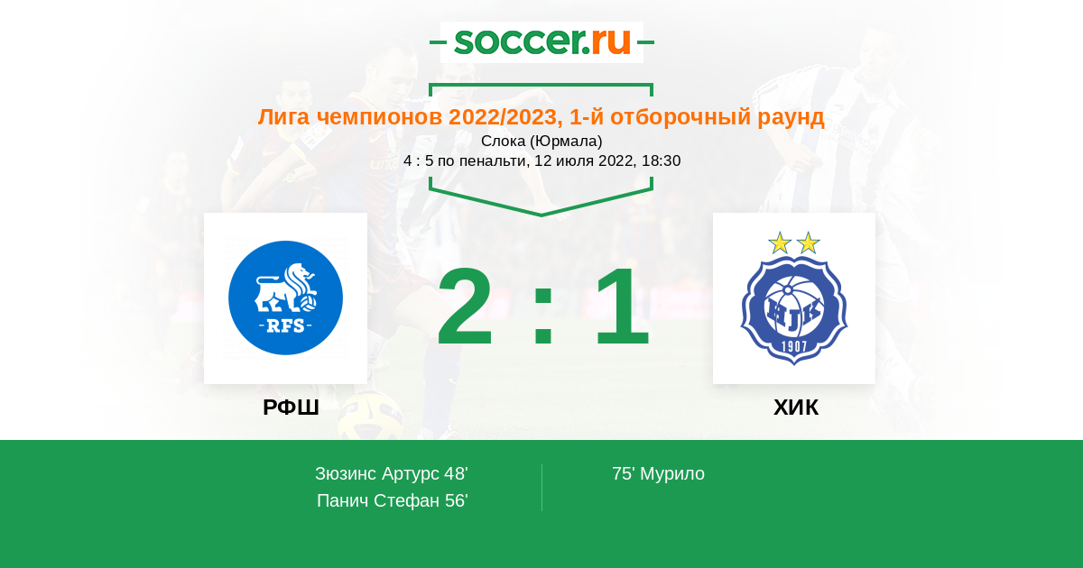 В завтрашнем матче отборочного раунда лиги Чемпионов между командами РФШ и ХИК рискну предположить, что победят гости потому, как их рейтинг гораздо выше хозяев, но мячи будут забиты обоими соперниками.