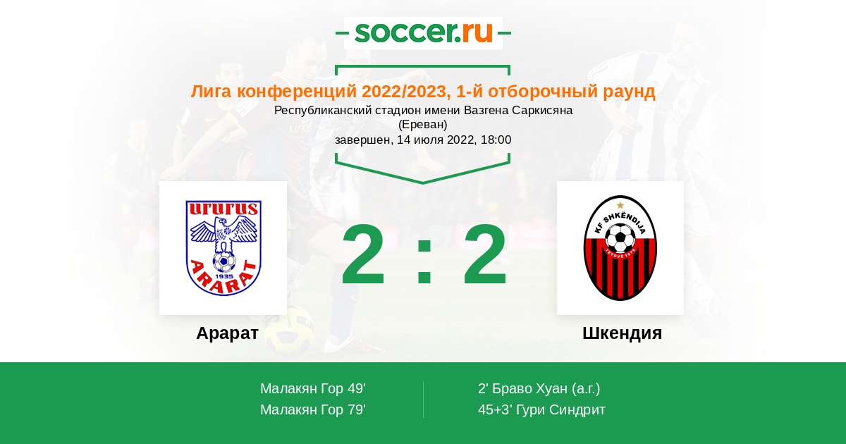 Фаворитом в этой паре букмекеры считают Шкендию. Соглашусь, у Арарата сезон не удается. Команда неуверенно выступает в собственном чемпионате, но ведь и Шкендия не суперклуб. Я думаю, у армянской команды есть все шансы победить на своём поле.