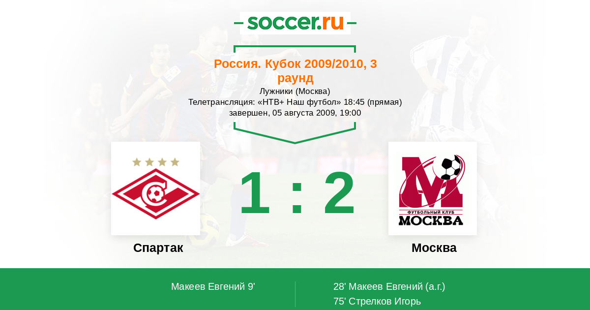 Россия. Премьер-Лига 16.08.2009 Спартак Логотип футбольный клуб Спартак (Москва) 2:1 Логотип футбольный клуб ФК Москва ФК Москва
