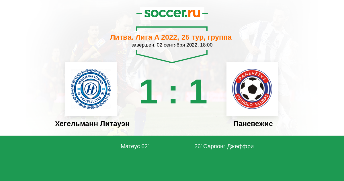 Литва. Лига А 21.09.2025 Паневежис Логотип футбольный клуб Паневежис 0:1 Логотип футбольный клуб Хегельманн Литауэн (Каунас) Хегельманн Литауэн