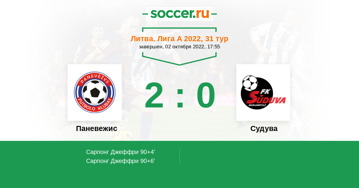 Литва. Лига А 02.08.2020 Судува Логотип футбольный клуб Судува (Мариямполе) 1:0 Логотип футбольный клуб Паневежис Паневежис