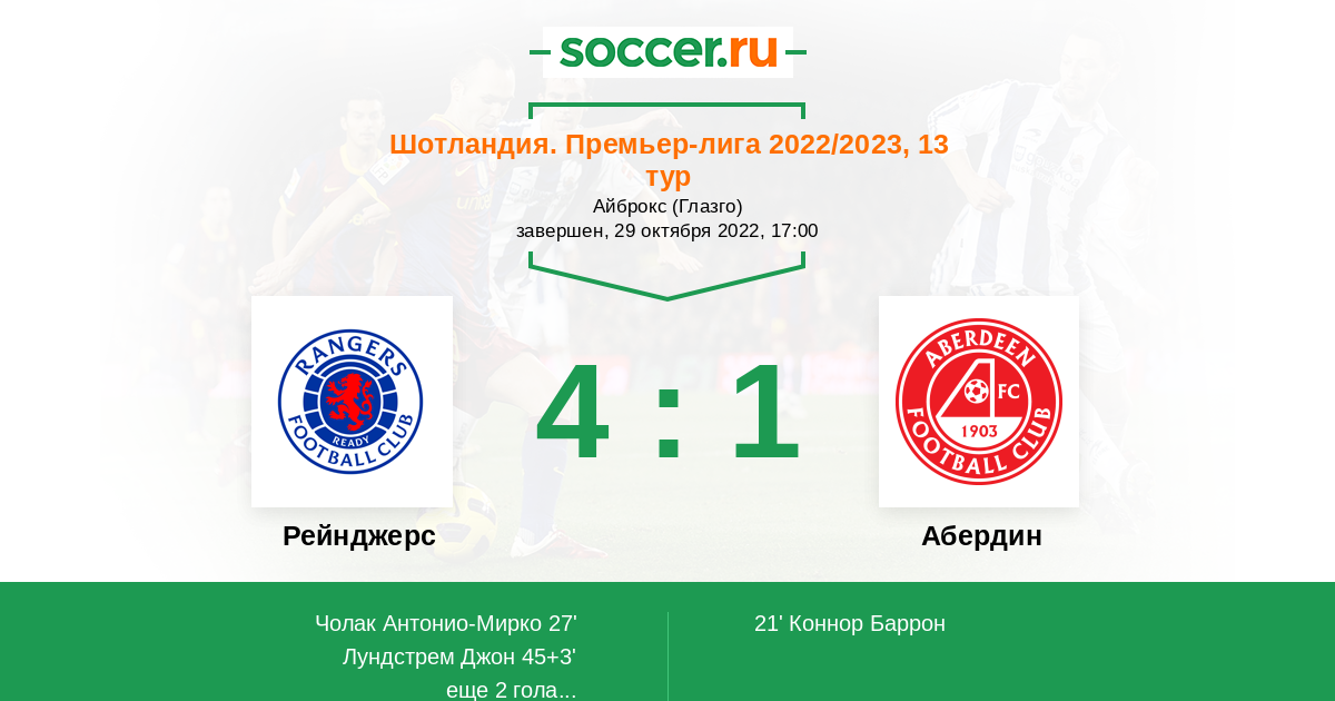 Шотландия. Премьер-Лига 05.03.2022 Рейнджерс Логотип футбольный клуб Рейнджерс (Глазго) 1:0 Логотип футбольный клуб Абердин Абердин